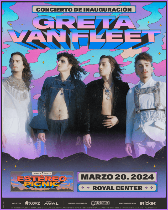 Greta Van Fleet también hará parte de la decimotercera edición del festival Estéreo Picnic que se celebrará por primera vez en el Parque Simón Bolívar los días 21, 22, 23 y 24 de marzo. El show de Greta Van Fleet está programado para el viernes 22 junto a artistas como Four Tet, Phoenix y Sam Smith, entre otros.