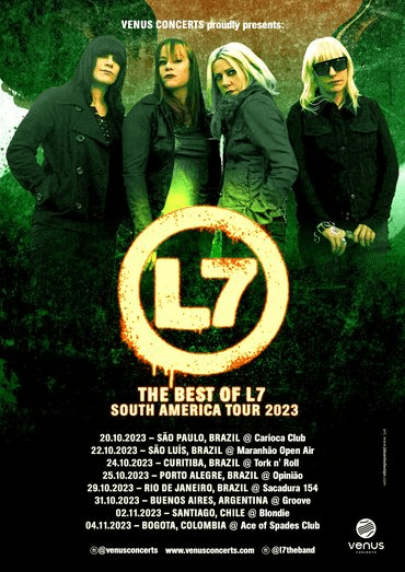 La agrupación californiana L7 realizará su primer concierto en nuestro país presentando los grandes éxitos de una carrera de casi cuatro décadas de duración. El show de este influyente conjunto de rock alternativo está confirmado para el día sábado 4 de noviembre en Ace of Spades Club de Bogotá.