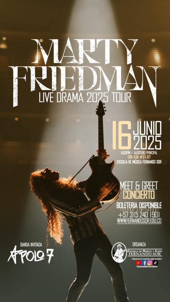Por Colombia el invitado especial será Apolo 7, banda amiga personal de Marty Friedman.