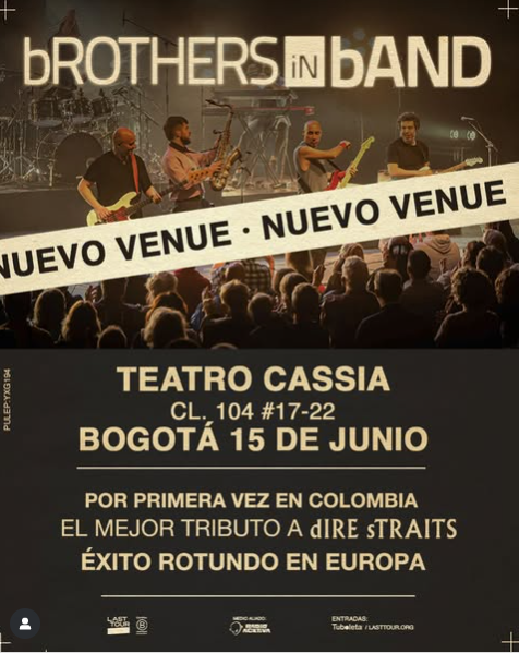 Por lo anterior llega a nuestro país la agrupación española Brothers In Band con un espectáculo que revive el espíritu de Dire Straits interpretando varios de sus éxitos con gran fidelidad y una puesta en escena que será una absoluta máquina del tiempo. El show se realizará este domingo 15 de junio en el Teatro Cassia.