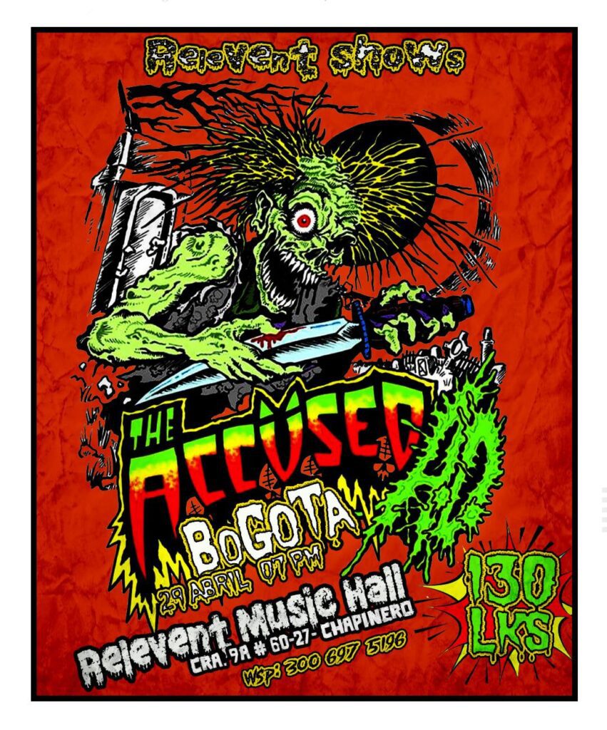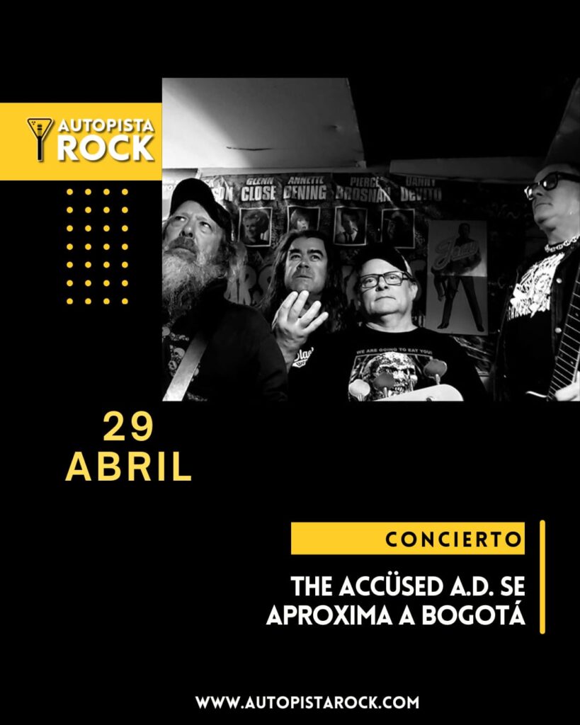 La agrupación estadounidense The Accüsed A.D. realizará su primera actuación en nuestro país. La banda está conformada por miembros históricos de The Accüsed, banda de culto en la fusión del punk con el metal desde los años ochenta. Este concierto se realizará en Relevant Music Hall el próximo martes 29 de abril.